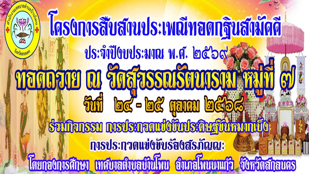ขอเชิญชวนพี่น้องชาวตำบลบ้านโพนร่วมงาน โครงการสืบสานประเพณีทอดกฐินสามัคคี ประจำปีงบประมาณ พ.ศ.2569